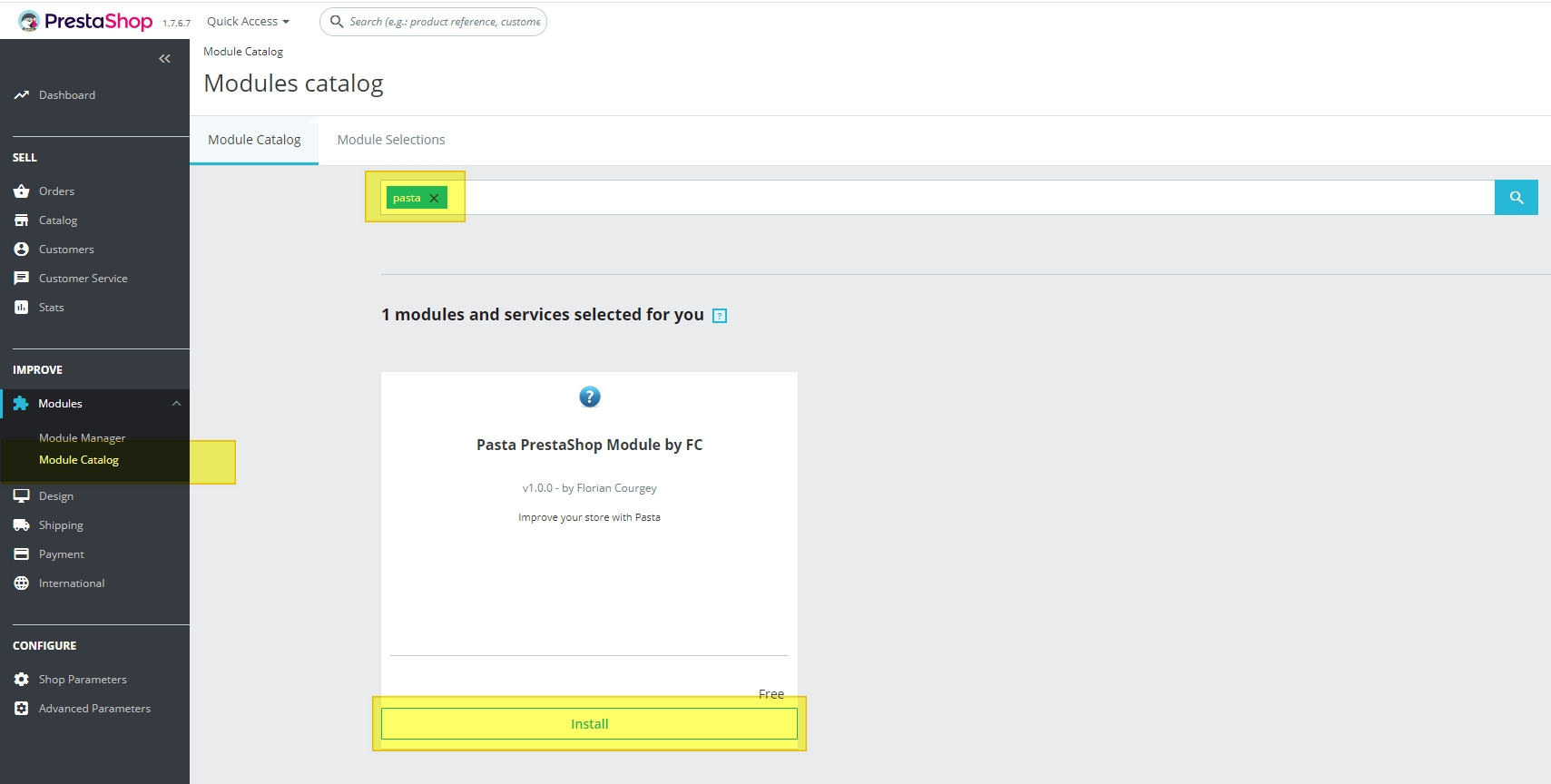 If you get the error message Page not found - The controller AdminPasta is missing or invalid., make sure the tab is installed in ps_tab with: