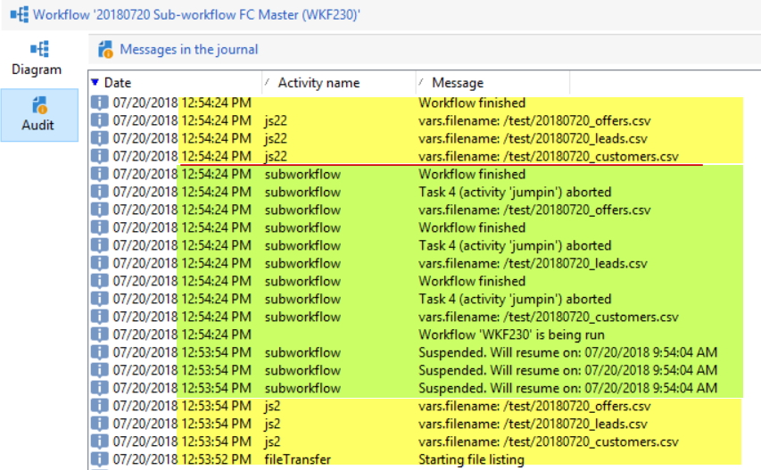 A typical application of this method would be to have a File Collector in the Master, and for each file, call the Child Workflow. Let’s do it and check if there’s any flaw in the process!