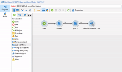 Go ahead and run the Master workflow. You can see the transition arrows getting blue until they hit the End Activity. Well done! Go back to the Child sub-workflow, and refresh it.