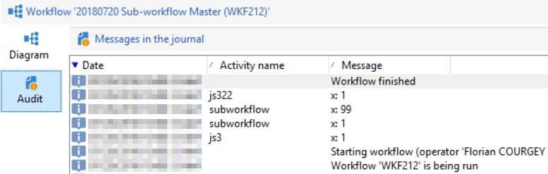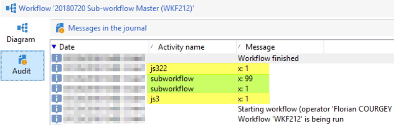 Ok. But what happened? x has a value of 1, so in the Child workflow, its value will be updated to 99. Here’s the log: