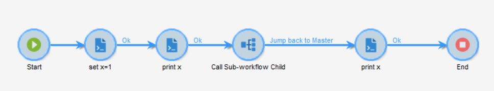 For the sub-workflow to work correctly, you have to have only ONE Arrival Jump with the lowest number, and only ONE Starting Jump with the highest number.
