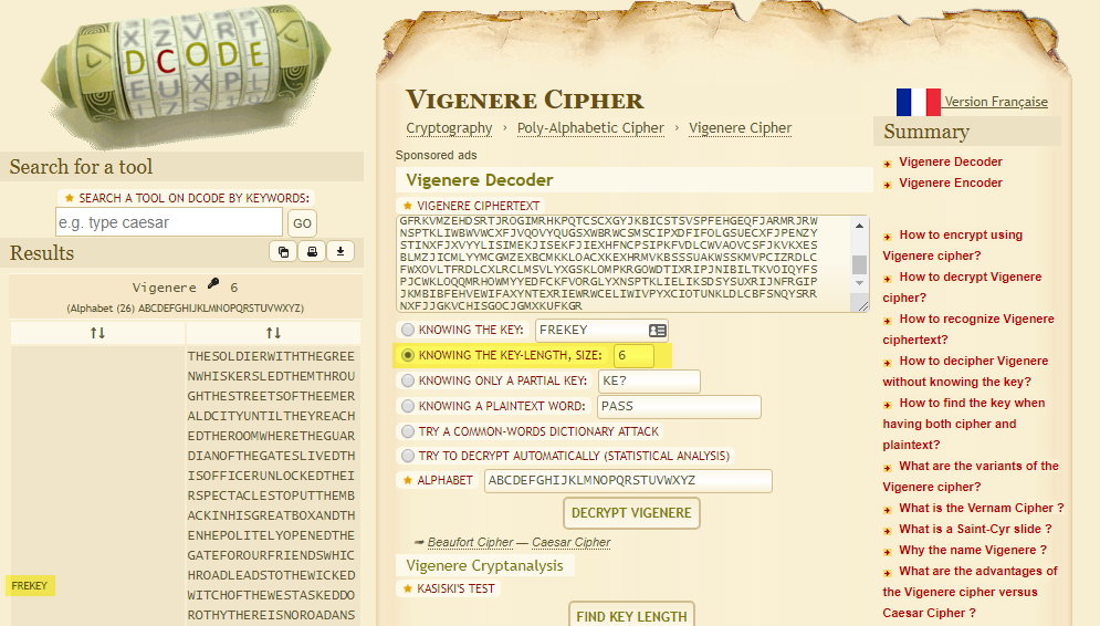 Viegenere breaker in JCrypTool: