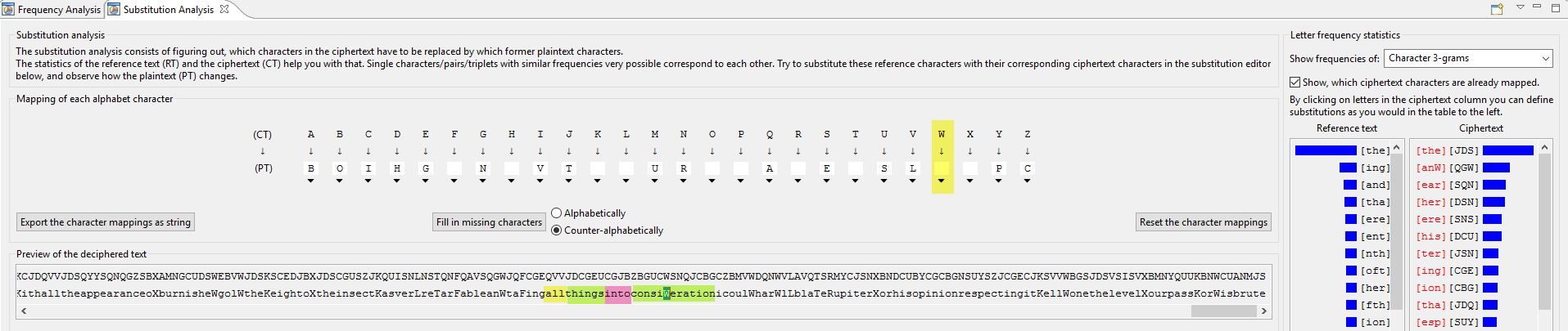 Buuuuuut after many tries, I couldn’t find it this way. I tried many alphabets from letterfrequency.org such as etaoinsrhldcumfpgwybvkxjqz (English) or eariotnslcudpmhgbfywkvxzjq (Oxford).