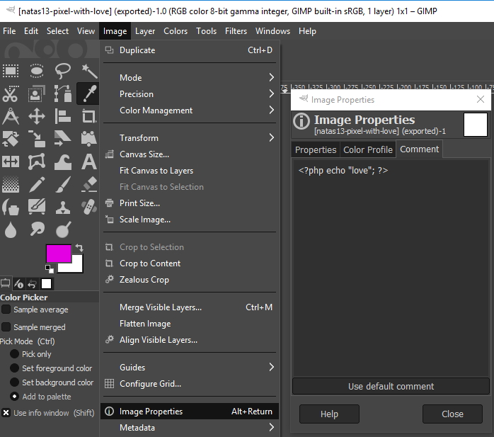 You can download the final payload here overthewire-natas13-pixel-with-backdoor.jpg