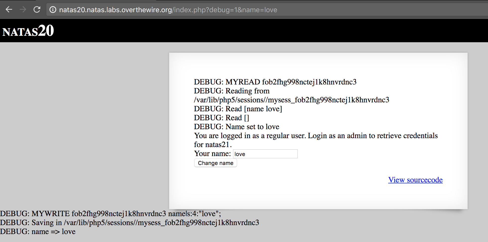 Let’s write the content of /natas/natas_webpass/natas26 to our log file: