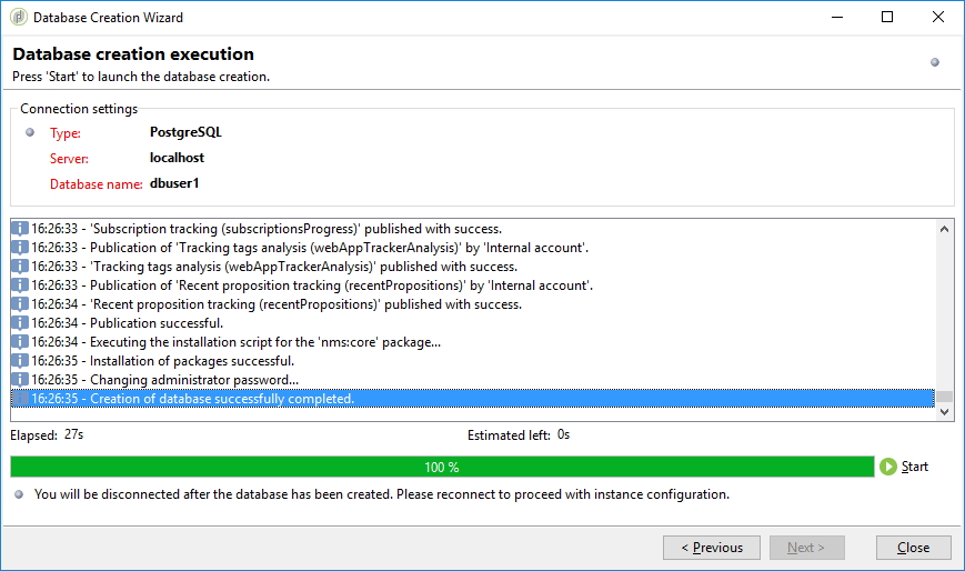 17:59:09 > Starting 1 connection(s) on pool 'default instance1' (postgresql, server='localhost', login='dbuser1:dbuser1')