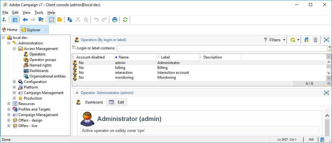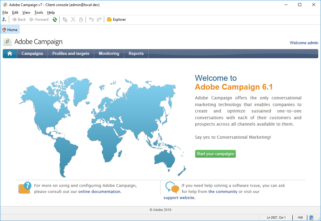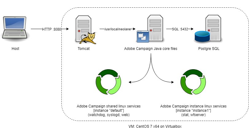 Local install Adobe Campaign to set up your own development environment! Useful for testing and demo. Plus, access to any VM feature such as snapshots and duplication.