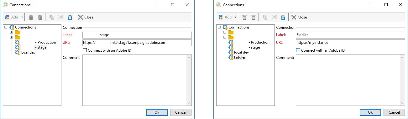 {:static function OnBeforeRequest(oSession: Session){ if (oSession.HostnameIs("MYINSTANCE")) { oSession.host = "mkt-stage1.campaign.adobe.com:443"; // use 80 for HTTP, 443 for HTTPS or 8080 for Tomcat } // rest of the code
