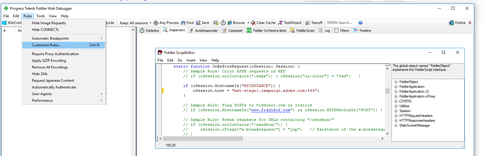 - Open Fiddler, got to Rule > Customize Rules, it will open the Fiddler Script Editor