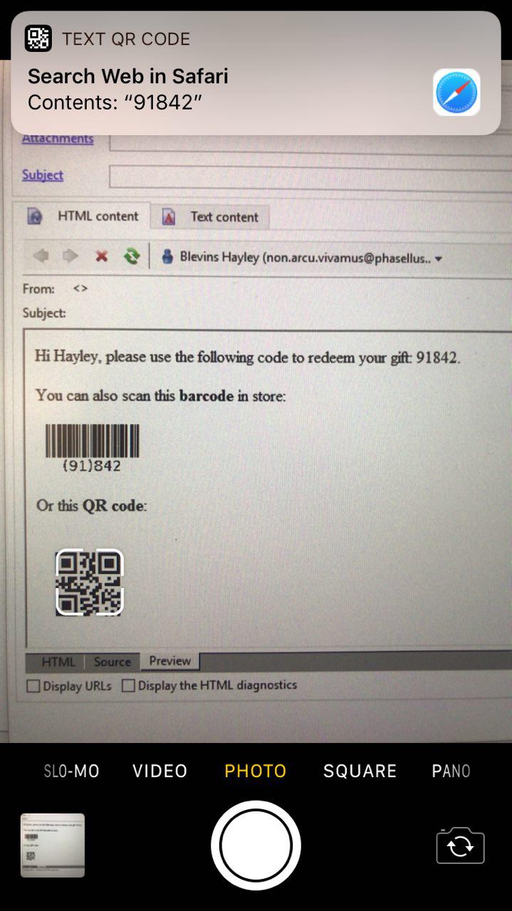 It can then be read using any device, such as an iPhone 7 with the default Camera app: