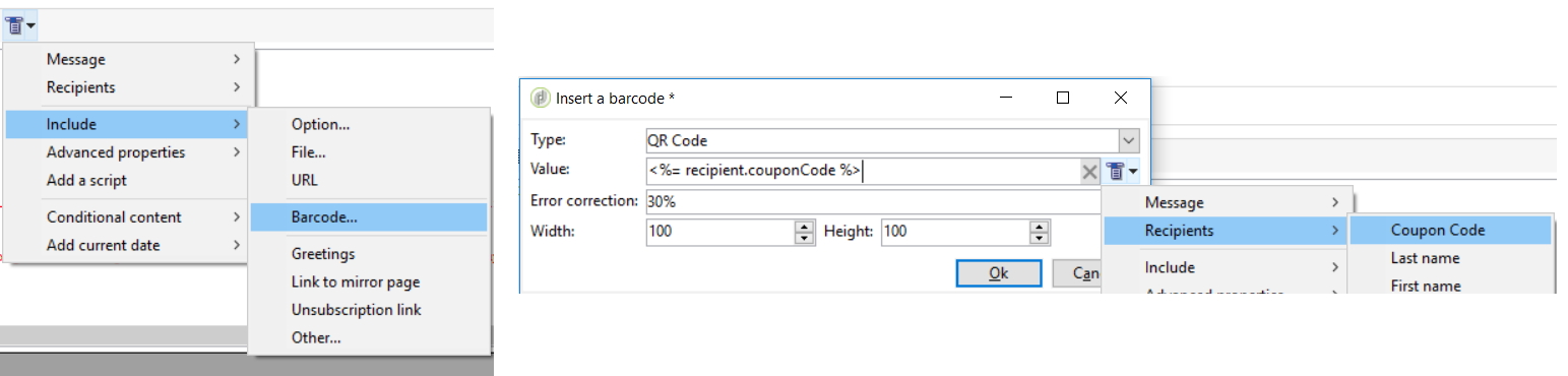 How to use QR codes, barcodes (EAN-8, EAN-128), ISBN or any code used in retail industry in Adobe Campaign with recipient customization.