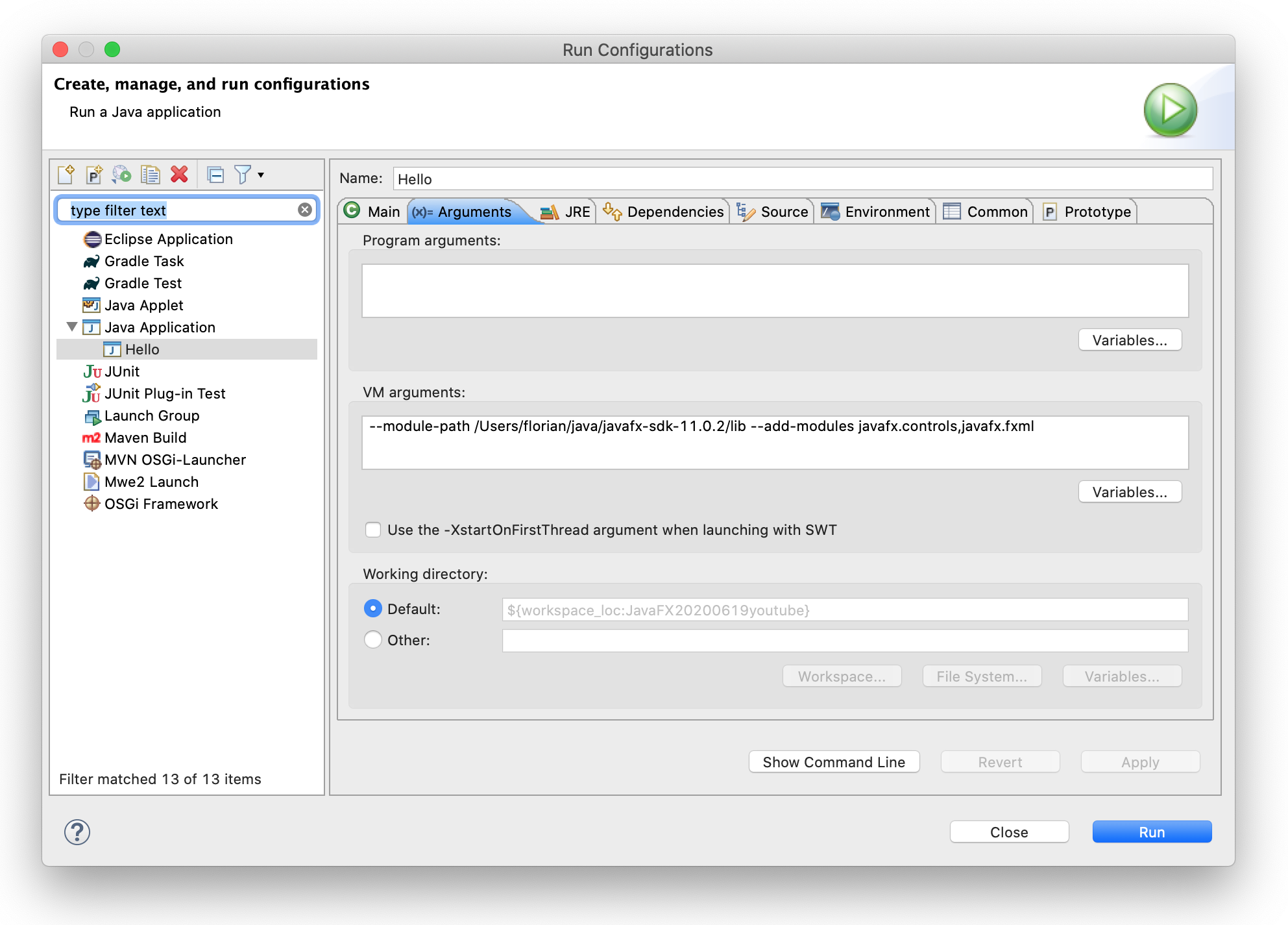 NB: do not use $PATH_TO_FX in Eclipse VM Arguments as it wonβt work and will yield