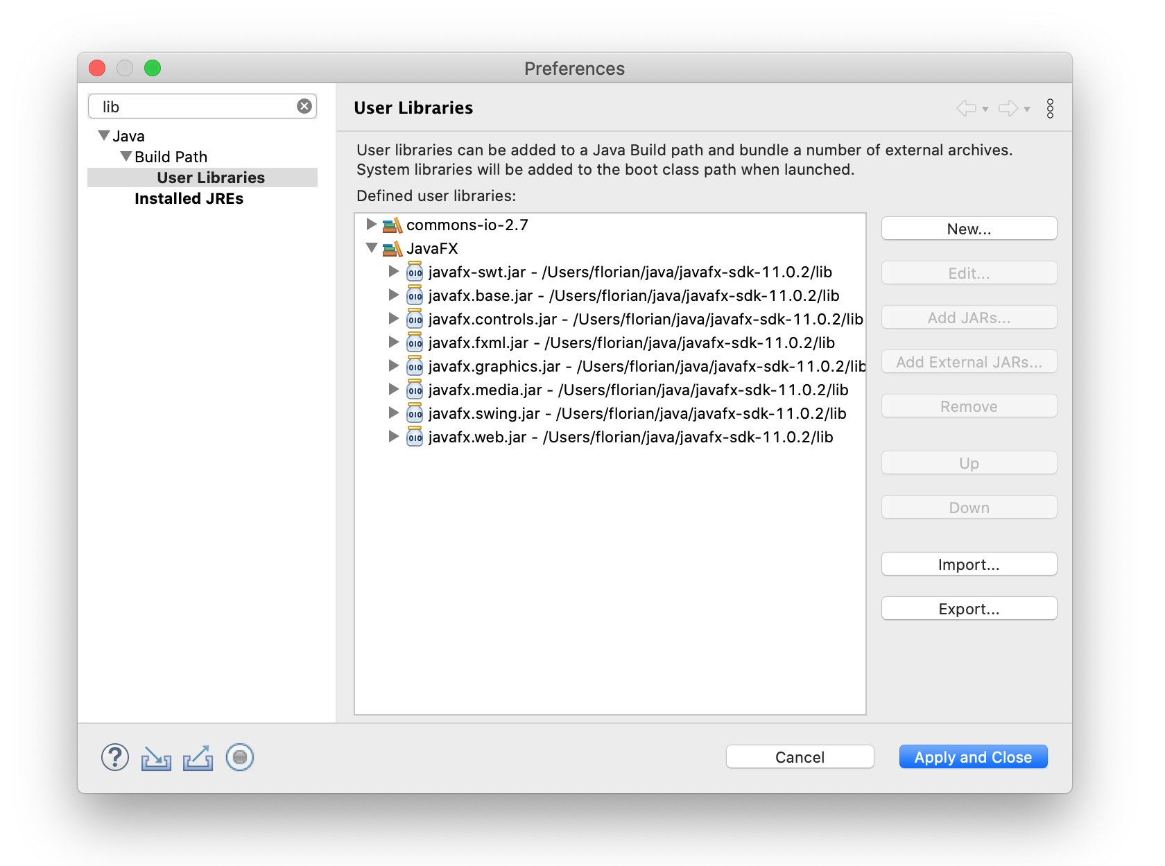 ~/java/javafx-sdk-11.0.2. - Then, create an ENV var to store the JavaFX path