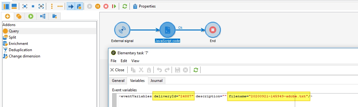 vars.deliveryId: the delivery idvars.descriptionvars.filename: the absolute or relative filepath of the generated delivery external file